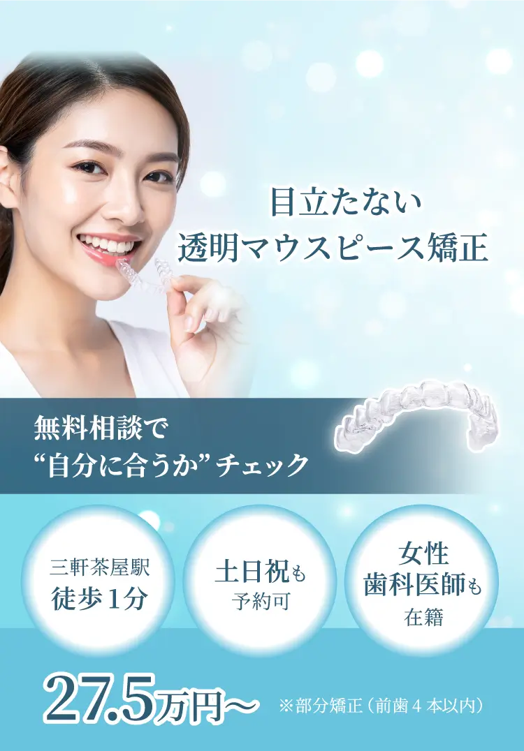 マウスピース矯正は、ワイヤー矯正に比べて痛みが少ないのが特徴ですが、歯が動き始める最初の数日は違和感や軽い痛みを覚えることがあります。ほとんどの方は数日で慣れますので、ご安心ください。